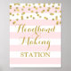 Poster de bar de sinal de de doce para chá de fraldas ou festa de aniversario de meninas em padrões de listras brancas e cor-de-rosa claro com efeito de brilho dourado confetti; note que ouro é apenas efeito fotográfico.