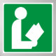 O sinal de aviso de estrada e autoestrada ao estilo internacional aconselhando uma biblioteca próxima.