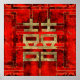 Símbolo de Felicidade Dupla Geométrico Dourado na Tinta Vermelha