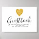 Convide convidados para assinar seu livro de convidados com este design de coração de folha de ouro elegante e minimalista. Todo texto pode ser personalizado. Você também pode alterar a cor de fundo