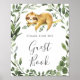 Dê aos seus hóspedes uma direção encantadora com nosso sinal de guia de preguiça dormindo, com cor d'água verde eucalipto garland e uma elegante fonte de estilo manuscrito.