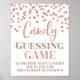Candy adivinhando poster de sinal de jogo para chá de fraldas em um padrão de confete de rosa dourado.