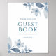 Este doce símbolo azul-aquarela floral do livro de hóspedes é perfeito para um casamento romântico, ao ar livre ou uma comemoração moderna e chica.
