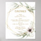 Este cartaz de menu de bebidas geométricas de ouro eucalipto é perfeito para o seu elegante casamento de boho. Ele foi projetado com simples flores brancas boêmicas e roxas de anêmonas, com cores de água simplistas folhas verdes de sábado e molduras de ouro modernas de inverno. Com a combinação de verde floral branco e verde rústico simples, vocês certamente criam a atmosfera de seus sonhos.