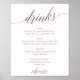 Este elegante cartaz de bebida em caligrafia rosa é perfeito para um casamento simples. A design cor-de-rosa-pincelada apresenta uma poster minimalista decorada com tipografia de folha de ouro rosa-falso romântica e caprichosa. Personalize o sinal com as bebidas disponíveis na sua recepção. Nota: Este design não apresenta folha de ouro rosa real. É um gráfico de alta qualidade feito para se parecer com folha de ouro rosa.