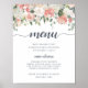 O carinhoso cardápio floral de verão mostra suas seleções de janto em caligrafia química e em caracteres tradicionais de blocos, acentuados por uma borda superior de flores de aquarela pastel e folhagem em tons de rosa-pincel, pêssego e verde-sábio. Projetado para combinar com nossa elegante coleção floral de MidSummer.