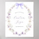 Sinal de Texto Personalizado com borda de cor d'água de flores silvestres e um arco roxo para corresponder à coleção encontrada no Compro Adore Paper Co. Zazzle. Personalize com seu texto para ajustado das necessidades do seu partido!