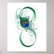 O símbolo do infinito com uma pena brilhante, verde, de pavão artístico sobre um fundo branco. Tatuagem.