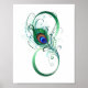 O símbolo do infinito com uma pena brilhante, verde, de pavão artístico sobre um fundo branco. Tatuagem.