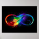 Símbolo infinito desenhado artificialmente com uma bela pena arco-íris sobre fundo branco. Tatuagem.