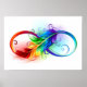 Símbolo infinito desenhado artificialmente com uma bela pena arco-íris sobre fundo branco. Tatuagem.