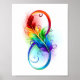 Símbolo infinito desenhado artificialmente com uma bela pena arco-íris sobre fundo branco. Tatuagem.