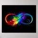 Símbolo infinito desenhado artificialmente com uma bela pena arco-íris sobre fundo branco. Tatuagem.