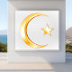 A lua crescente e a estrela são um símbolo do Islã. O Ramadã é observado por muçulmanos em todo o mundo como um mês de jejum, oração, reflexão e comunidade. A escritura sagrada do Islã é o Corão. ***Observe que a cor de ouro no trabalho de arte não é metálica.**