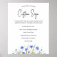 Perfeito para o seu sinal de casamento. Possui uma fonte moderna e nossas flores silvestres de campo azul-claro ilustradas.Totalmente personalizável com suas informações.