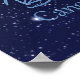 Impressão com o símbolo do Cancer em azul-prateado suave, sobreposto às estrelas da constelação, contra um fundo do céu estrelado formando de azul-da-meia-noite a preto.