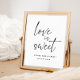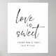 Design simples de "amor é doce" em fontes modernas com um pouco de coração entre os nomes dos casais. Excelente para sinais de favorecimento de mesa em casamentos e festas de noivado. A cor de fundo é personalizável.