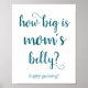 "Quão grande é a barriga das mães?" Sinal de mesa. Chá de fraldas simples ou gênero revelam um sinal de festa em preto e branco básico com um roteiro divertido, escrito à mão. O clássico design inclui uma moderna camada de tipografia de citações feitas à mão. Para outras cores ou produtos correspondentes, visite a loja justFharryn Zazzle ou entre em contato com o designer, c/o Fharryn@yahoo.com Todos os direitos reservados. #bohochic #zazzlemade