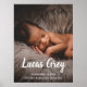 Poster de fotos personalizadas bonitas apresentando um simples design com uma fotografia do seu novo bebê, menino ou menina, juntamente com o seu nome em um roteiro de giz moderno e suas estatísticas de natalidade. Uma adição perfeita à decoração da usina do bebê.