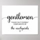 Este simples sinal de casa de banho preto é perfeito para um casamento rústico ou moderno. A design minimalista apresenta uma elegante letra de escrita de pincel e um adorável coração feminino. O cartaz diz "cavalheiros, por favor, ajudem-se a elogiar os recém-casados".