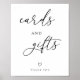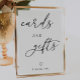 Sinais modernos minimalistas de "Cartões e Presentes" para sua mesa de presente. Apresentando um roteiro elegante de caligrafia.