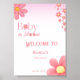 Simples cor-de-rosa chá de fraldas de flor rosa, sinal de boas-vindas, todo o texto é comestível