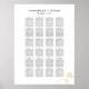 Ideal para um grande casamento. Este assento é uma parte crucial do vosso decoro de recepção e dá aos vossos hóspedes uma maneira fácil de encontrar o seu lugar numa mesa. Todo o texto pode ser personalizado, incluindo o número da tabela, os nomes de hóspedes, o título e o subtítulo, com os seus nomes e a data do casamento. O gráfico é configurado para 24 mesas com dez pessoas cada, desmarque a última caixa ou duas se você tiver menos mesas ou use as opções personalizar para reorganizar as caixas de texto de acordo com seu gosto e suas necessidades.