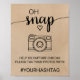 Esta simples placa de caligrafia "oh snap" é perfeita para um casamento rústico. A design minimalista apresenta uma elegante letra de escrita de pincel e um adorável coração feminino num fundo kraft falso. Personalize a placa com a hashtag de casamento. Por favor, observe que isto não está impresso em papel kraft real. É um gráfico de alta qualidade feito para parecer papel kraft.