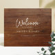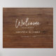 Este simples modelo de boas-vindas de na moda de casamento apresenta um design limpo, minimalista e moderno. Demos a este design minimalista um caráter distinto combinando uma fonte animada e relaxada de 'Bem-vindo' com seus primeiros nomes destacados abaixo entre o resto da mensagem de boas-vindas e sua data, e deixamos um espaço considerável em todos os lados do texto para um olhar desordenado que desenhar atenção à mensagem. O texto está numa base que tem o aspecto de madeira rústica. Por favor, note que não é madeira, é apenas uma imagem. Use sua inspiração e as ferramentas intuitivas de design para fazer com que este versátil casamento seja poster único. E por favor, deem uma olhada na nossa coleção de sinais de boas-vindas para outros designs de música simples, incluindo um design em formato vertical!