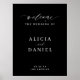 Noiva de casamento elegante e nomes de noivos personalizados de sinal de boas-vindas preto, impressa com um moderno roteiro de caligrafia manuscrito. +++++++++++++ Adequado para casamentos formais de na moda. +++++++++++++++ Observe que a cor de fundo é editável. Download digital disponível.