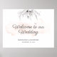 Bem-vindos aos seus convidados com esta simples e romântica placa de boas-vindas do casamento, com um design floral desenhado à mão na moda sobre um fundo cor-de-água cor-de-pêssego rosa. Adicione facilmente seus nomes e a data do casamento editando os campos de modelo.