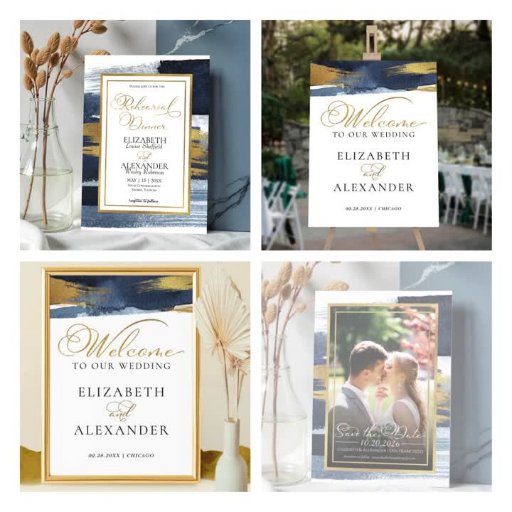 Mergulhe na nossa Coleção de Casamentos de Abstrato e deixe seu casamento brilhar. A coleção é uma mistura única de sotaques azuis marinhos e dourados, emparelhados perfeitamente com uma reviravolta de aquarela moderna. Este conselho Pinterest oferece uma oportunidade de explorar designs refinados e se inspirar para seu dia especial.