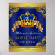 O príncipe chá de fraldas recebe sinais com bela coroa azul e dourada num elegante fundo azul real e dourado. Basta adicionar seu texto para personalizar. Você pode redimensionar e mover a coroa conforme necessário.