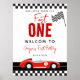 Comece a primeira festa de aniversário de estilo do seu piloto com este sinal de boas-vindas do carro de corrida Fast One! Apresentando um tema legal de carro de corrida com bandeiras arrojadas e tipografia divertida, este sinal dá o tom para uma celebração excitante. Perfeito para um aniversariante carinhoso, este sinal é excelente para a decoração de entrada, para os fundos de fotos e para o estilo da festa. Personalize com o nome do seu filho para um toque pessoal!