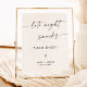 Este belo Sinal de Lanches Noturnos apresenta uma elegância minimalista maravilhosamente moderna para mostrar no seu casamento ou evento especial. Edite facilmente a maioria dos textos para corresponder ao seu estilo. As cores de texto e de fundo são totalmente editáveis —> clique no botão "Editar usando a ferramenta Design" para editar!