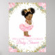 A chá de fraldas da princesa africana americana assina com uma adorável menina princesa, vestindo um tutu rosado friamente e pérolas em um bonito fundo rosa e ouro floral. Simplesmente personalize com seu texto.