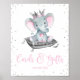 Sinal de mesa de presente de chá de fraldas elefante com elefante de bebê princesa adorável em um fundo brilhante prateado. Este símbolo de mesa de presente de elefante de menina giro pode ser colocado em uma armação de 8 x 10 polegadas e colocado na mesa