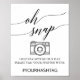 Esta elegante placa de caligrafia negra "oh snap" é perfeita para um casamento simples. A design neutra apresenta uma poster minimalista decorada com tipografia romântica e caprichosa. Personalize a placa com a hashtag de casamento.