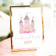 Este adorável design apresenta um castelo de aquarela pintado manualmente e flores.