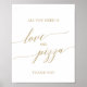 Este sinal de amor e pizza em caligrafia dourada plana elegante é perfeito para um casamento simples ou chá de noiva. O design neutro apresenta um sinal minimalista decorado com tipografia romântica e caprichosa em amarelo dourado.