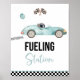 Este adorável design apresenta um carro azul de corrida de aquarela com detalhes de chama.