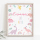 Este adorável design apresenta dinossauros desenhados à mão, arco-íris e folhas em cores pastéis.