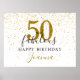 Esta sofisticada tipografia em letra cursiva preta e dourada, sinal de aniversário com estrelas douradas e confetes 50 e fabuloso pode ser personalizado com as informações da sua celebração de aniversário. Criado por Thisisnotme©