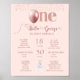 Um doce balão cor-de-rosa brilhante para o número UM, pontos brilhantes de confetti para celebrar todos os marcos maravilhosos, e um roteiro feminino para o nome da menina. É ideal como um aviso para exibir na primeira festa de aniversário de 1rua da sua filha. #marco