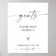 Melhore o charme do seu casamento minimalista com o nosso sinal de caixa de banho minimalista do Gents, elegantemente desenhado. Modifique facilmente as cores para corresponder ao seu tema clicando no botão azul 'Editar usando a ferramenta design' na seção personalização.