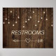 Aponte seus convidados na direção direita com este sinal apontando para o banheiro - este tem uma seta apontando para a esquerda; há também um com uma seta apontando para a direita.