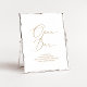 Esta delicada placa de bar aberta de caligrafia dourada é perfeita para um casamento moderno. A design romântica minimalista apresenta uma magnífica e elegante tipografia amarela ouro champanhe num fundo branco com um aspecto simples e limpo.