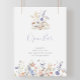 Este verão, sinal de bar aberto de flores silvestres multicolores é perfeito para um casamento rústico. O design apresenta uma coloração aquosa, rosa, púrpura, vermelha, burgundy, amarela, flores brancas e borboletas, com vegetação nebulosamente embebida em buquês florais elegantes.