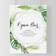 Este sinal de bar de casamento de destino geométrico é perfeito para um casamento tropical. O design apresenta palma verde-aquarela pintada à mão e folhas de bananeira bem organizadas em belos buquês, enfeitando um quadro geométrico dourado.