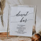 Este elegante sinal de bar de caligrafia negra é perfeito para um casamento simples. A design neutra apresenta uma poster minimalista decorada com tipografia romântica e caprichosa. Personalize o sinal com suas opções de sabor de rosquinha.